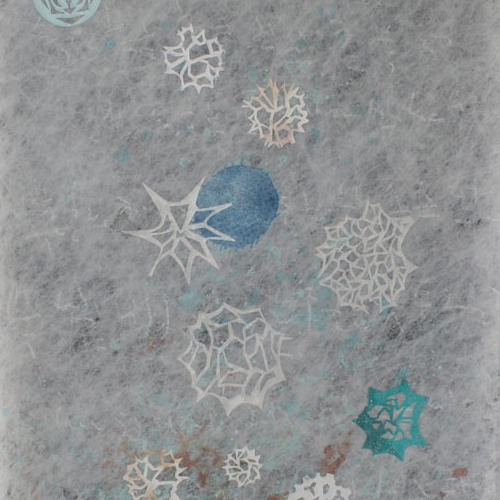 Nesta exposição as imagens e as palavras constituem-se por camadas, em sobreposição, utilizando suportes translúcidos como véus, através dos quais “surge no silêncio o lugar à invocação da vida e à perfeição das suas formas”.